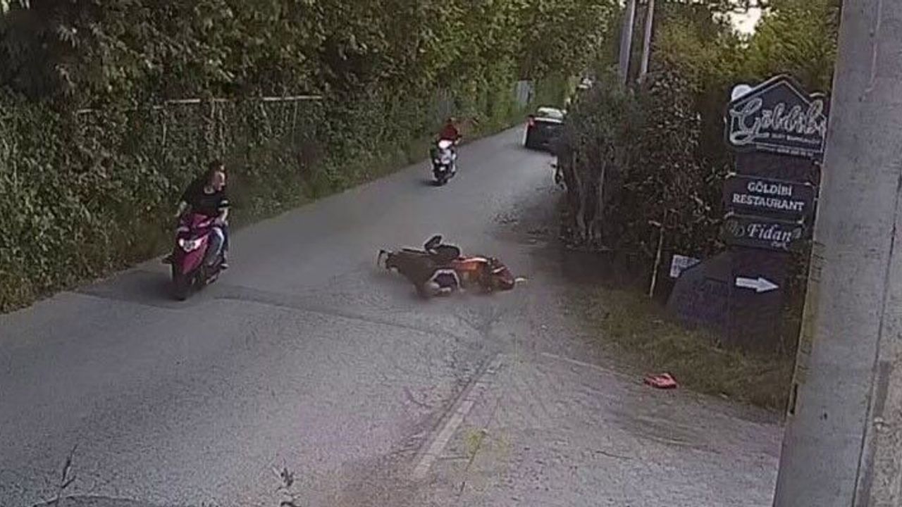 SAKARYA (İHA) – Sakarya’nın Sapanca ilçesinde 30 yaşındaki adam, kasksız şekilde kullandığı motosikletin devrilmesi neticesinde yerde savruldu. Başını asfalt zemine çarpan sürücü ağır yaralanırken, o anlar güvenlik kamerasına yansıdı.