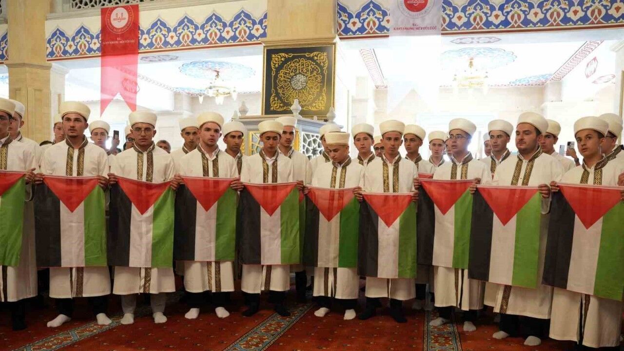 Kastamonu Müftülüğü bünyesindeki Hz. Pir Yatılı Erkek Kur’an Kursu’nda eğitim gören 38, Şehit Şerife Bacı Yatılı Kur’an Kursu’nda eğitim gören 22, Mescit Köyü Yatılı Kur’an Kursu’nda eğitim gören 1 öğrenci olmak üzere 61 öğrenci icazet alarak hafız oldu. 38 erkek hafız ve 23 kız hafız için Kuzeykent Ulu Cami ve Grandmoni Konferans Salonunda icazet programı gerçekleştirildi. Kuzeykent Ulu Cami’de gerçekleştirilen programda hafızlar açtıkları Filistin bayraklarıyla yürüyerek yerlerini aldı. Kur’an-ı Kerim tilavetiyle başlayan programda ilahiler okundu, eller semalara açılarak dualar edildi.