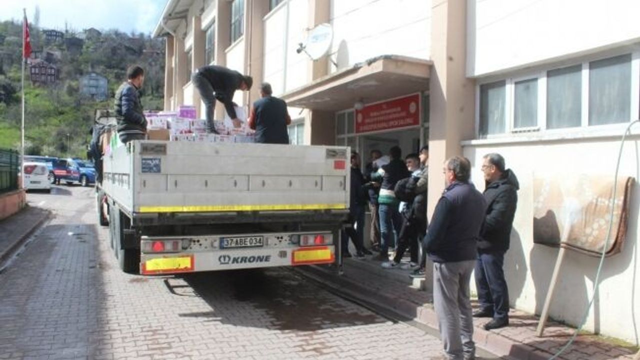 Kastamonu’nun İnebolu ilçesinde toplanan gıda ve hijyen kolileri, deprem bölgesine gönderildi.