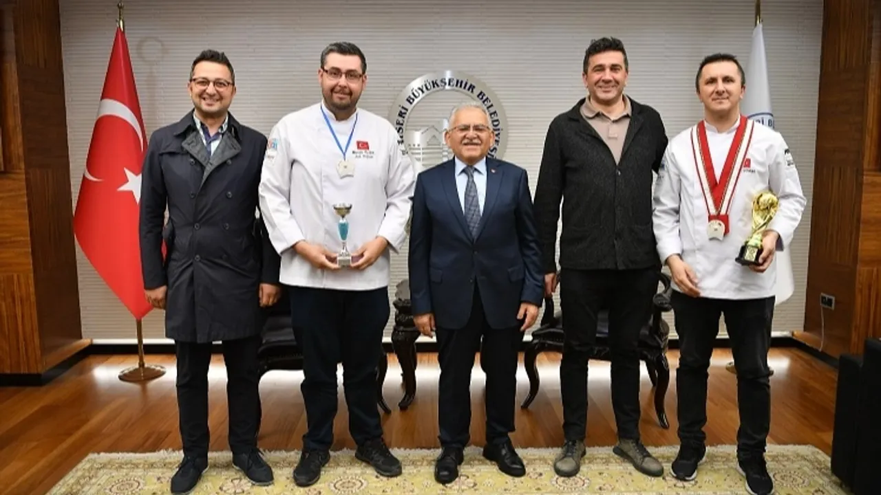 Bu kapsamda 20. Uluslararası Mutfak Festivali’ne Kayseri’den katılan ve festivalden altın madalya ile şehre dönen Erciyes Üniversitesi Turizm Fakültesi Gastronomi ve Mutfak Sanatları Bölümü Dr. Öğr. Üyesi Mustafa Ülker ve Şef Naci Dündar’ı konuk eden Büyükkılıç, “Festivalden altın madalya ile dönerek bizleri gururlandıran değerli akademisyenimiz Dr. Öğr. Üyesi Mustafa Ülker ve şefimiz Naci Dündar’ı gayretlerinden dolayı tebrik ediyoruz ve şehrimizi tanıtmak adına gösterdikleri bu başarıdan dolayı da teşekkür ediyorum. Kayseri pastırmasını uluslararası alanda başarıyla tanıtan kıymetli katkılarından dolayı kendilerini kutluyor, nazik ziyaretleri için teşekkür ediyorum” ifadelerinde bulundu.