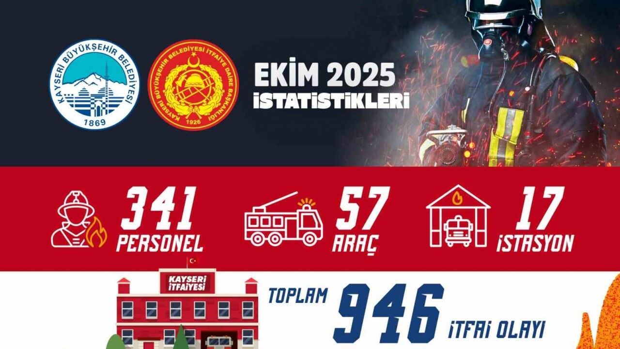 Kayseri Büyükşehir Belediyesi İtfaiye Teşkilatı ekipleri; özverili çalışmaları ile 2025 yılının Ekim ayında 946 olaya müdahale etti.