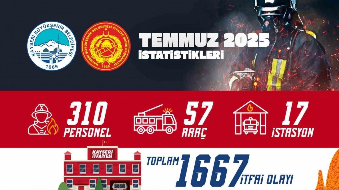Kayseri Büyükşehir Belediyesi İtfaiye Daire Başkanlığı; 2025 yılının Temmuz ayında da fedakâr ve özverili çalışmalarını sürdürerek toplam bin 667 olaya başarıyla müdahale etti.