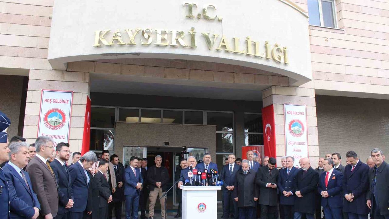 Kayseri Valisi Gökmen Çiçek ise; 'Kayseri'de milli bayramlar, dini bayramlar bir farklı geçiyor. Bu şehir, sigorta bir şehir. Özellikle bu Ramazan ayı bambaşka geçti. Çocukluğumuzda yaşadığımız 'Ne güzel Ramazandı' dediğimiz Ramazan'a çok benzeyen bir Ramazan ayı geçti Kayseri'de. Camiler çocuk sesleriyle doldu, taştı. İftarlar, sahurlar, insanların birbirlerini davetleri, birlik ve beraberliğin bol olduğu bir Ramazan oldu. Sonunda bayrama kavuştuk. Biz farklı bir şehiriz; milletvekillerimizin hepsi burada, siyasi parti başkanlarımız, belediye başkanlarımız, kaymakamlarımız birlik ve berberlik içerisinde siyasi görüşü ne olursa olsun kenetlenmeyi, sarılmayı bilen bir şehiriz. Dolayısıyla Ramazan Bayramı'nda yine birlik ve beraberlik içerisindeyiz. Dünyanın her yerinde mazlumlara işkenceler çektirildiği bir dünyada yaşıyoruz. İnşallah dünyada mazlumların çektiği acının bitmesine vesile olacak bizim milletimiz olduğunu biliyorum. Gençlerden tüm dünya mazlumları için hazır ve dik durmaları gerektiğini ifade etmek istiyorum' diye konuştu. Vali Çiçek ayrıca bayram tatiline gidecek olan vatandaşlardan hız ve trafik kurallarına uymalarını istedi.