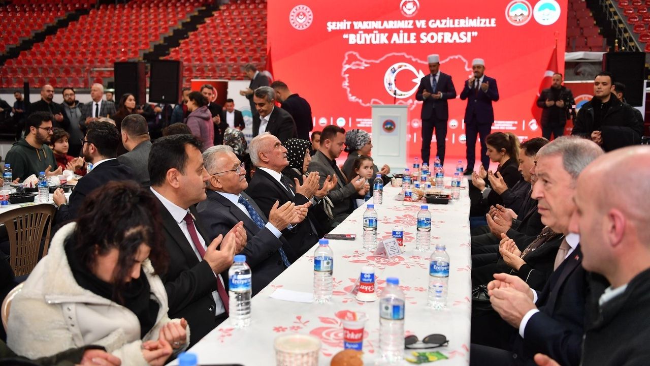 Kayseri Valiliği ve Büyükşehir Belediyesi tarafından Kadir Has Kongre ve Spor Merkezi'nde düzenlenen Büyük Aile Sofrası'nda Başkan Büyükkılıç, TBMM Milli Savunma Komisyonu Başkanı, AK Parti Kayseri Milletvekili Hulusi Akar ve Kayseri Valisi Gökmen Çiçek'in yanı sıra AK Parti MKYK Üyesi, Kayseri Milletvekili Dursun Ataş, AK Parti Kayseri İl Başkanı Hüseyin Okandan, Kayseri İl Müftüsü Durmuş Ayvaz, AK Parti Kayseri İl Kadın Kolları Başkanı Meral Koşar, Büyükşehir Belediyesi Genel Sekreter Yardımcısı Fatih Temaltaş, Türkiye Harp Malulü Gaziler Şehit Dul ve Yetimleri Derneği Kayseri Şube Başkanı Ali Yavuz, Türkiye Muharip Gaziler Derneği Kayseri Şube Başkanı Kasım Tutgun, ilçe belediye başkanları ile şehit aileleri, gaziler ve gazi aileleri katıldı. Programda konuşan Kayseri Büyükşehir Belediye Başkanı Dr. Memduh Büyükkılıç, konuklara 'Hayırlı Ramazanlar' temennisinde bulunarak, 'Sizlere minnet borçluyuz. Milletimizin ve devletimizin sizleri unutmayacağını sizler de takdir edersiniz. Sizlerin varlığı bize güç katıyor' diyerek, ay yıldızlı Türk bayrağının, vatanın, milletin, devletin bekası için el ele, hep beraber koşturduklarını, bu değerlere sahip olmak için çırpındıklarını dile getirdi. Konuşmasında, bir vatanı vatan yapanın o toprakların kazanılması ve korunması için verilen şehitler ve onlara sunulan değer olduğunu vurgulayan Başkan Büyükkılıç; 'Sizlerin sayesinde biz bugün bu vatanda hep beraber huzur içerisinde yaşıyoruz. Devletimizin bekasını sağlamaya gayret ediyor, bu manada aziz şehitlerimizi ve siz gazilerimizi olmazsa olmaz olarak görüyor, minnet duyuyoruz' ifadelerini kullanarak, teşriflerinden dolayı şehit ve gazi yakınları ile gazilere, iftar programı dolayısıyla Kayseri Valisi Gökmen Çiçek ile ekibine ve hizmetleri için Büyükşehir Belediyesi personeline teşekkür etti.