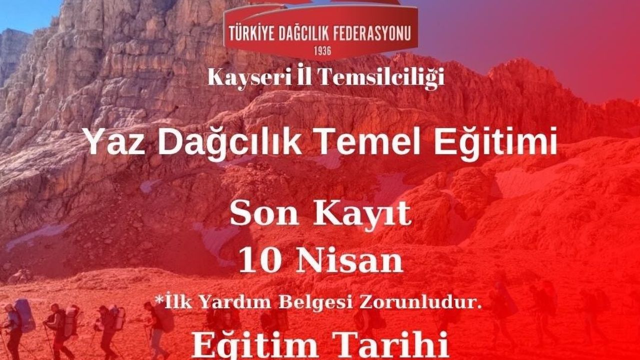 Kayseri Dağcılık İl Temsilciliği tarafından 29 Nisan-05 Mayıs tarihleri arasında Yaz Dağcılık Temel Eğitimi Kursu düzenlenecek.