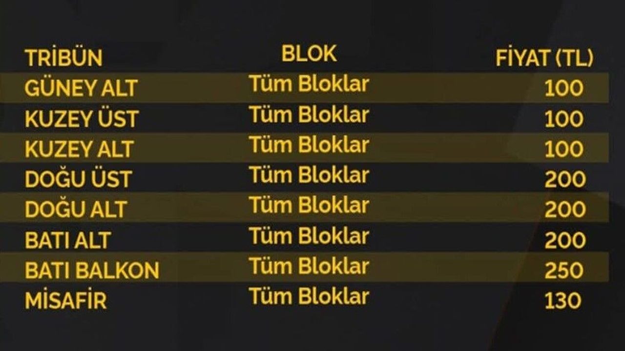 Misafir tribün bileti de 130 TL’den satışa sunuldu.