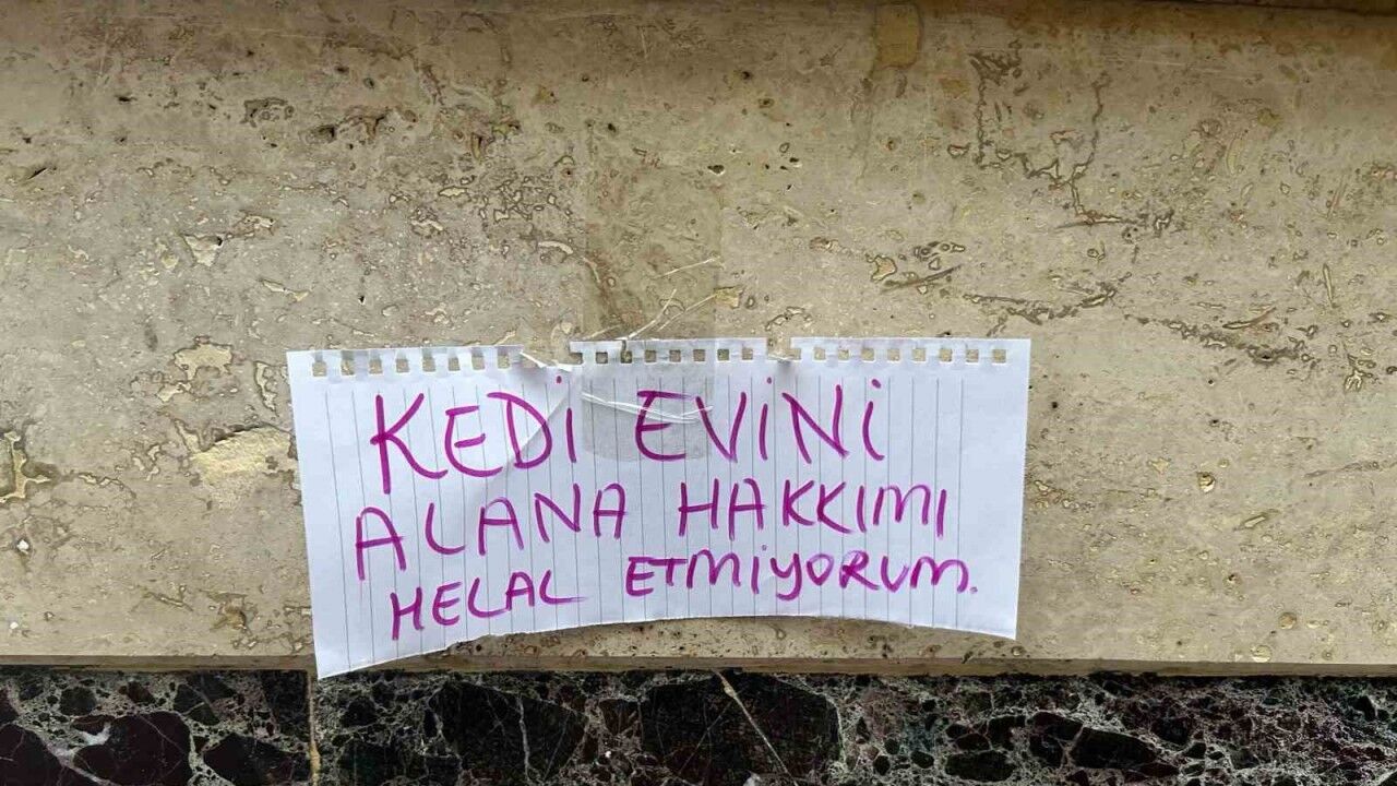 Eskişehir’de bir hayvanserver vatandaş, beslediği kedi evinin bulunduğu yerden alınmasına, "Kedi evini alana hakkımı helal etmiyorum" yazılı kağıt yapıştırarak tepki gösterdi.