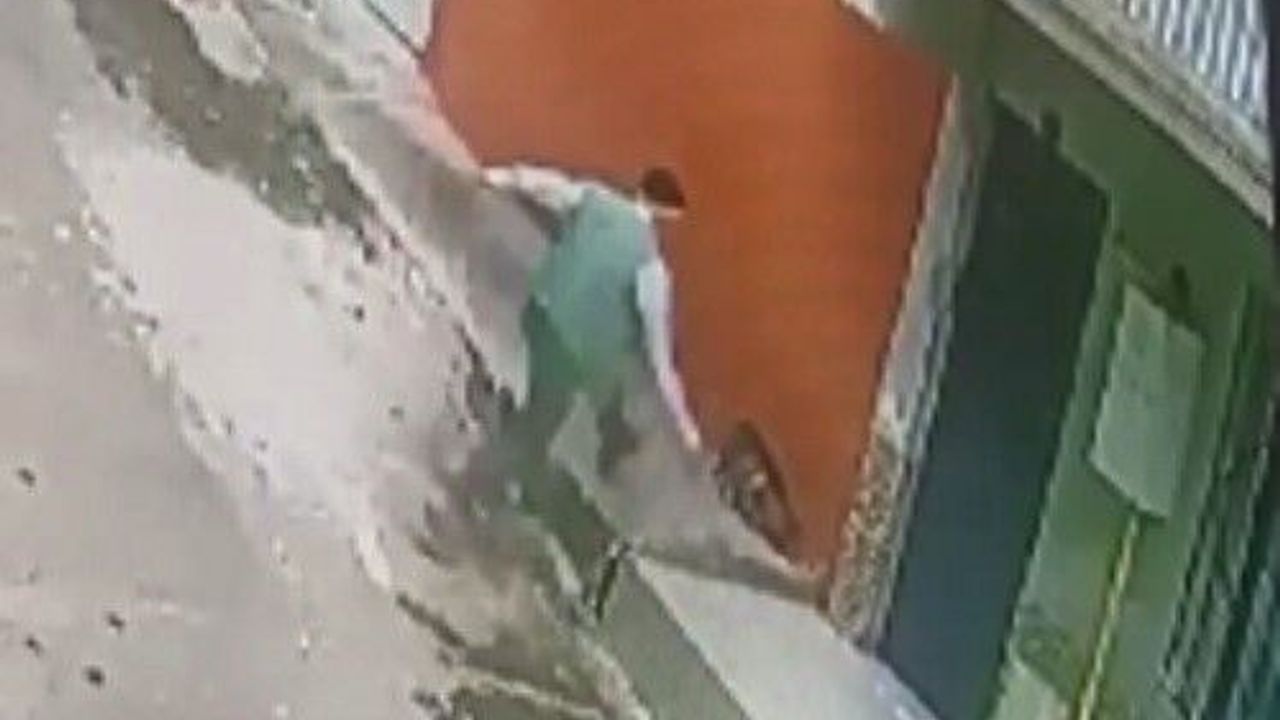 Yaşanan o anlar sokakta bulunan bir güvenlik kamerası tarafından görüntülendi. Görüntüde, adamın bir anda kediye doğru yürümesi, elindeki keserle vurması ve acı içerisinde kaçan kedinin peşinden gittiği anlar yer aldı.