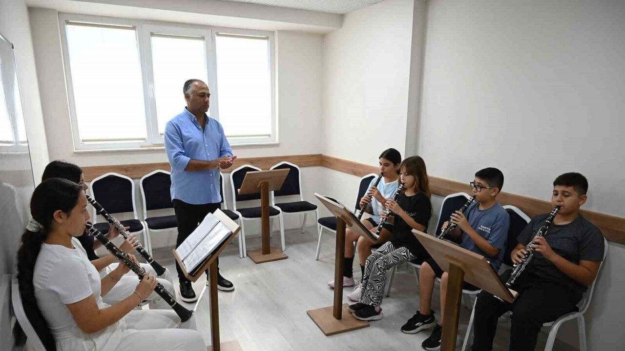 Kemer Belediyesi Gençlik Orkestrası Şefi ve merkezin proje koordinatörü Furkan Üstündağ yönetiminde gerçekleştirilen yaz kurslarına katılan kursiyerlere, müzik, modern dans, halk oyunları, drama ve Rusça dil kursları veriliyor.