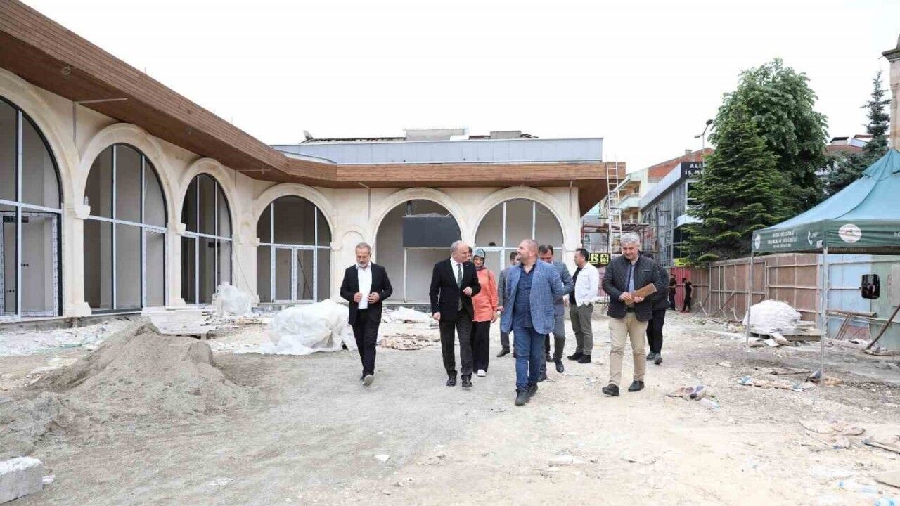 Cedidiye Cami ile uyumlu ve bütünlük oluşturacak şekilde yapımı devam eden çalışmalar hakkında proje yetkililerinden bilgi alan Başkan Faruk Özlü, dükkanların iç kısımlarını da gezerek, projenin kalan kısımlarının da kısa sürede tamamlanarak vatandaşların hizmetine sunulması için talimat verdi.