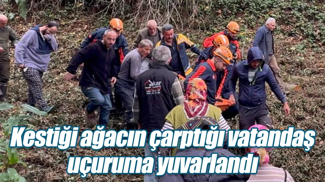 Rize’nin Pazar ilçesinde kesiği ağacağın çarparak savurduğu vatandaş hastaneye kaldırıldı.