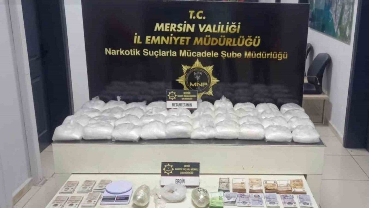 Mersin polisinin bir adrese düzenlediği operasyonda yaklaşık 4 milyon TL’lik dövizle birlikte 38 kilo 590 gram metamfetamin ile 1 kilo 244 kilogram eroin ele geçirildi.