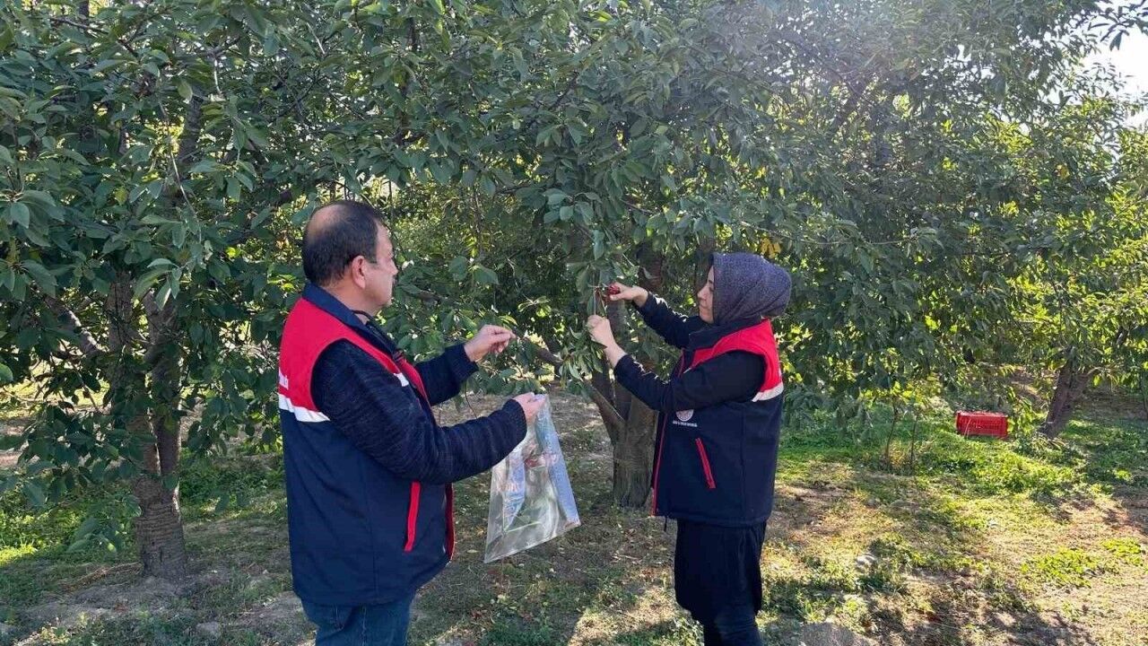 Afyonkarahisar’ın önemli tarım ürünlerinden kiraz ve vişne de zararlılara karşı numune alma çalışmaları başladı.