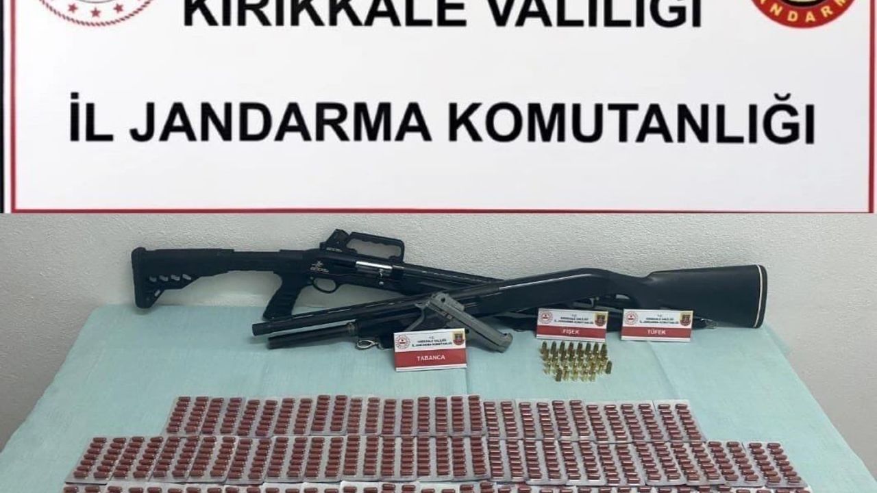Kırıkkale Cumhuriyet Başsavcılığı talimatıyla İl Jandarma Komutanlığı ekiplerince yürütülen çalışmalar kapsamında N.Ü. (31) isimli şahsın uyuşturucu madde ticareti yaptığı bilgisine ulaşıldı. Şüphelinin merkez ilçedeki evine operasyon düzenlendi. Jandarma ekiplerince yapılan aramada bin adet sentetik ecza, 2 av tüfeği, 1 tabanca ve 34 adet mühimmat ele geçirildi.