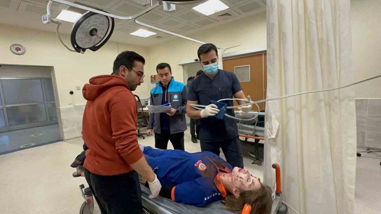 Tatbikatta karısının enkaz altında kaldığını söyleyen kişi ise tüyleri ürpertti.