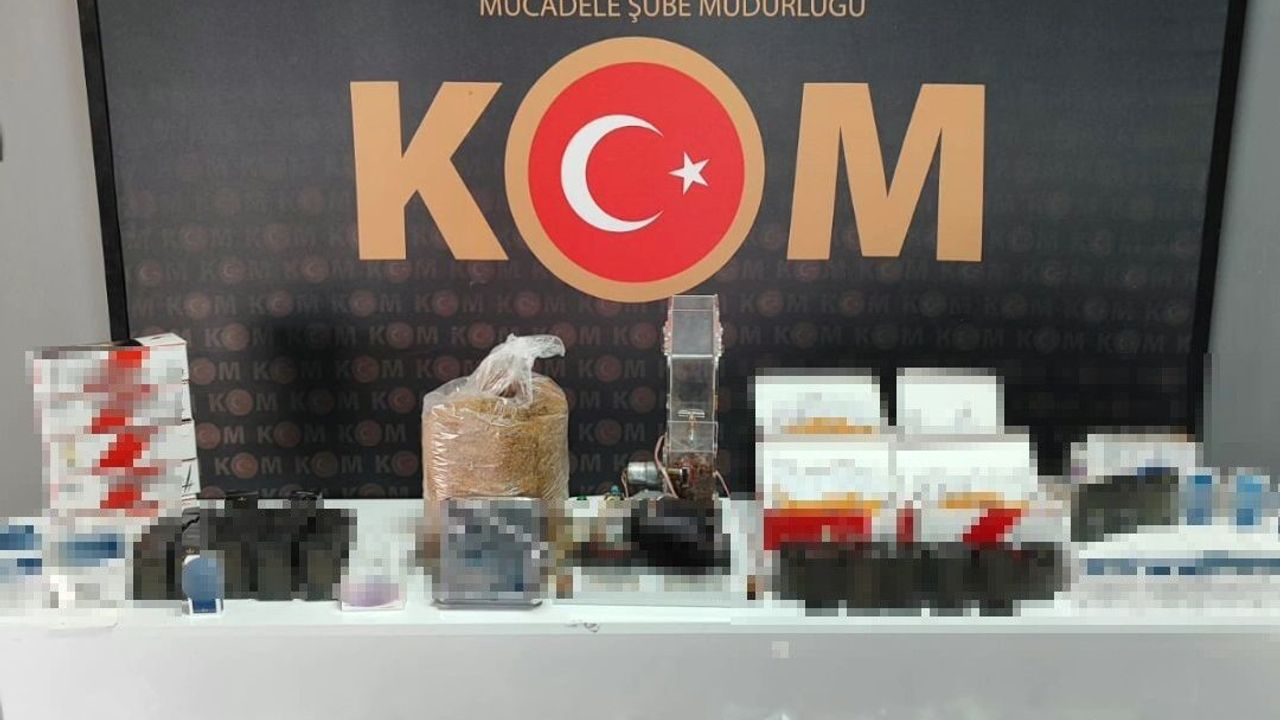 Yapılan operasyonda sigara sarma makinesi, 24 bin 860 içi tütün doldurulmuş makaron, bin adet boş makaron, 133,25 kilogram açık kıyılmış tütün, 26 bin sigara paketlemede kullanılan poşet ele geçirildi.