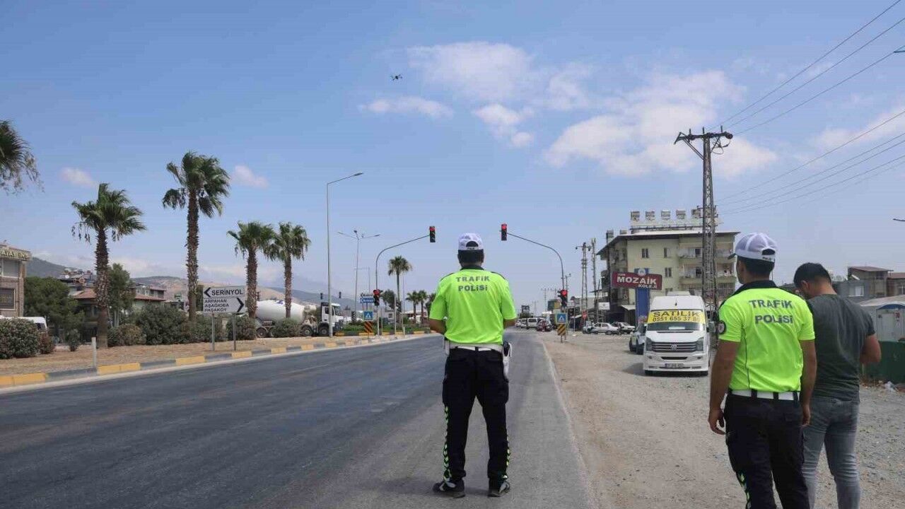 Hatay Emniyet Müdürlüğü Bölge Trafik Denetleme Şube Müdürlüğü ekiplerince kentte dron destekli trafik denetimleri aralıksız sürüyor. Kırmızı ışık, emniyet kemeri kullanımı, emniyet şeridi ihlallerine yönelik denetimlerde kurallara uymayan ve eksikliği tespit edilen araç sürücülerine idari para cezası uygulandı.