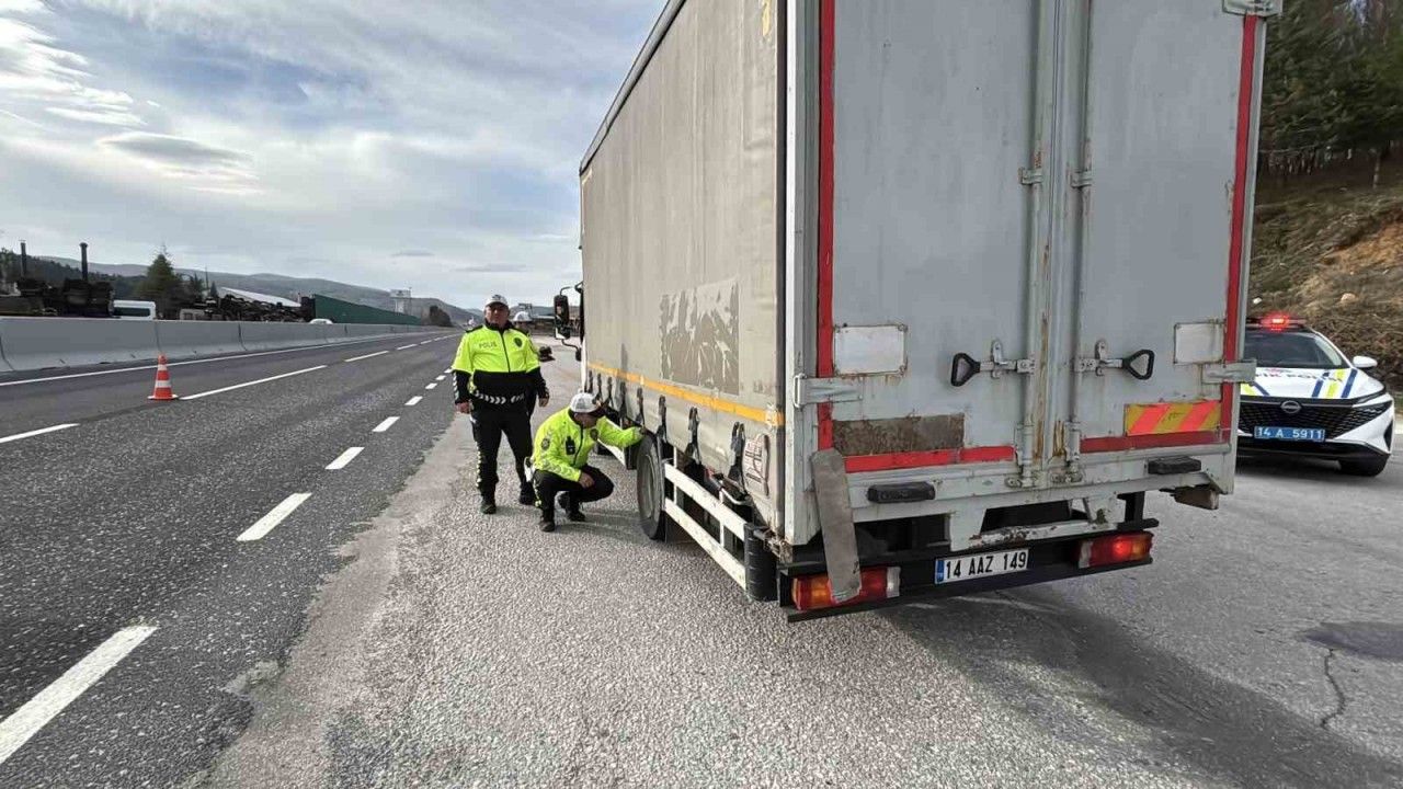 Bolu İl Emniyet Müdürlüğü Bölge Trafik Denetleme Şube Müdürlüğü ekipleri D-100 kara yolunun Bolu geçişinde önlemlerini artırdı. İstanbul ile Ankara arasında köprü görevi gören D-100 kara yolunun Bolu Dağı girişinde polis ekipleri uygulama noktası oluşturdu. Ekipler tarafından hafif ticari araç, kamyon, tır ve yolcu otobüslerine yönelik kış lastiği denetimi yaptı. Kış lastiği olmayan araç sürücülerine ise 5 bin 859 lira para cezası uygulandı.