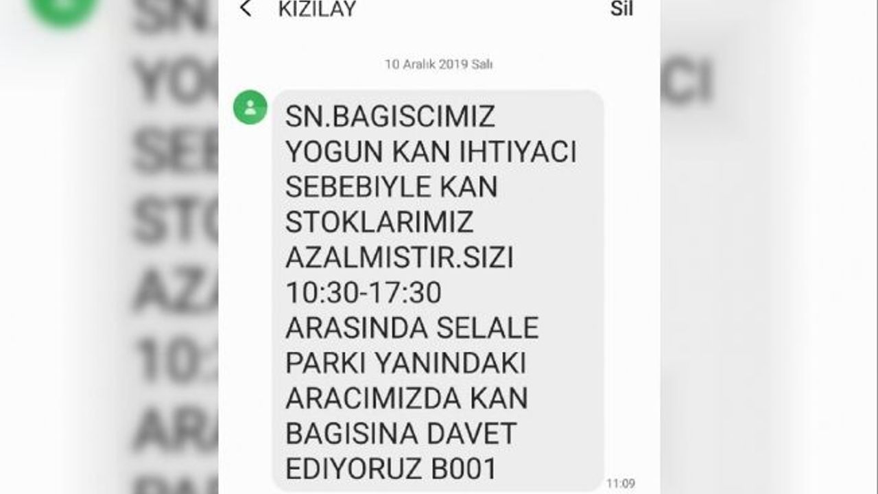 Kış mevsiminin gelmesiyle birlikte soğuk havalardan dolayı Türkiye genelinde kan bağışında düşüş yaşanmaya başladı. Bağıştaki düşüş, Kızılay için hayati önem taşıyan kritik stok seviyelerinin de azalmasına neden oldu. Hastanelerin acil kan ihtiyaçlarını karşılamada sıkıntı yaşamayan Kızılay, kritik stok seviyesini yükseltmek için halktan yardım istedi. Sistemlerinde kayıtlı olan düzenli kan bağışçılarının cep telefonuna, "Sayın bağışçımız, yoğun kan ihtiyacı sebebiyle stoklarımız azalmıştır" şeklinde bir SMS gönderip, kan bağışı yapmaları çağrısında bulundu. Mesajda, bağışçının bulunduğu şehirdeki kan bağış noktaları belirtildi.