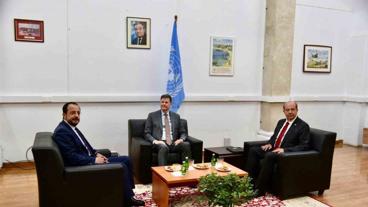 Kuzey Kıbrıs Türk Cumhuriyeti (KKTC) Cumhurbaşkanı Ersin Tatar ile Rum Yönetimi Başkanı Nikos Hristodulidis Lefkoşa’da bir araya geldi. Lefkoşa ara bölgedeki Ledra Palace Hotel’de Birleşmiş Milletler Genel Sekreteri’nin Kıbrıs Özel Temsilcisi ve Kıbrıs’taki Birleşmiş Milletler Barış Gücü (UNFICYP) Misyon Şefi Colin Stewart ev sahipliğinde gerçekleştirilen görüşme yaklaşık 1,5 saat sürdü.