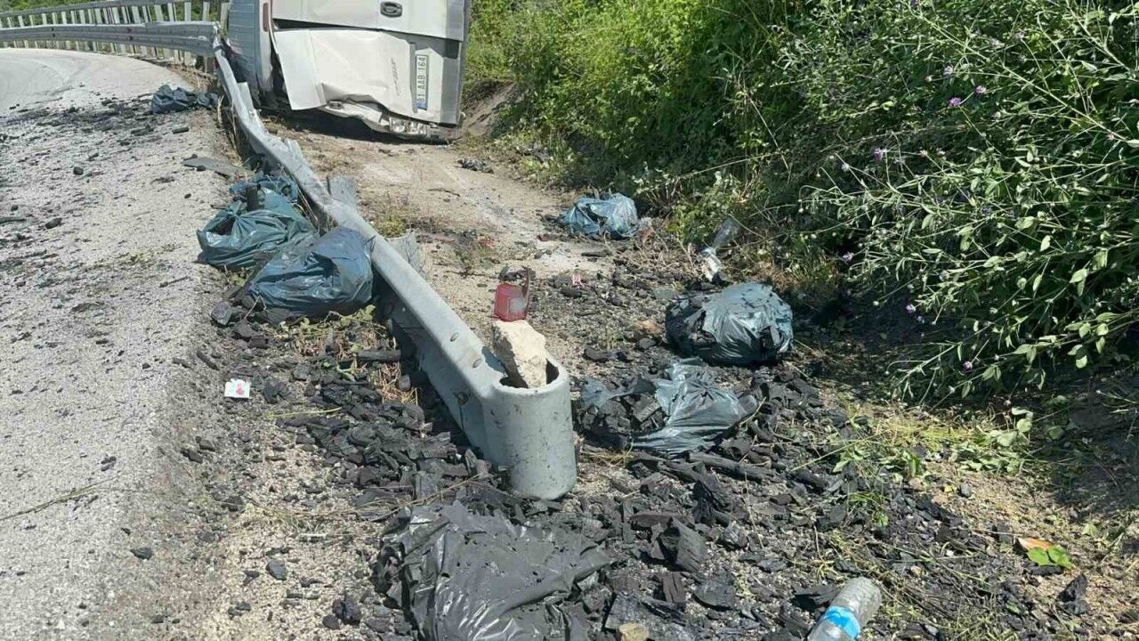 Bursa’da mangal kömürü taşıyan kamyonet hızlı girdiği virajı alamayınca yan yattı. Sürücü, ağır yaralı olarak hastaneye kaldırıldı.