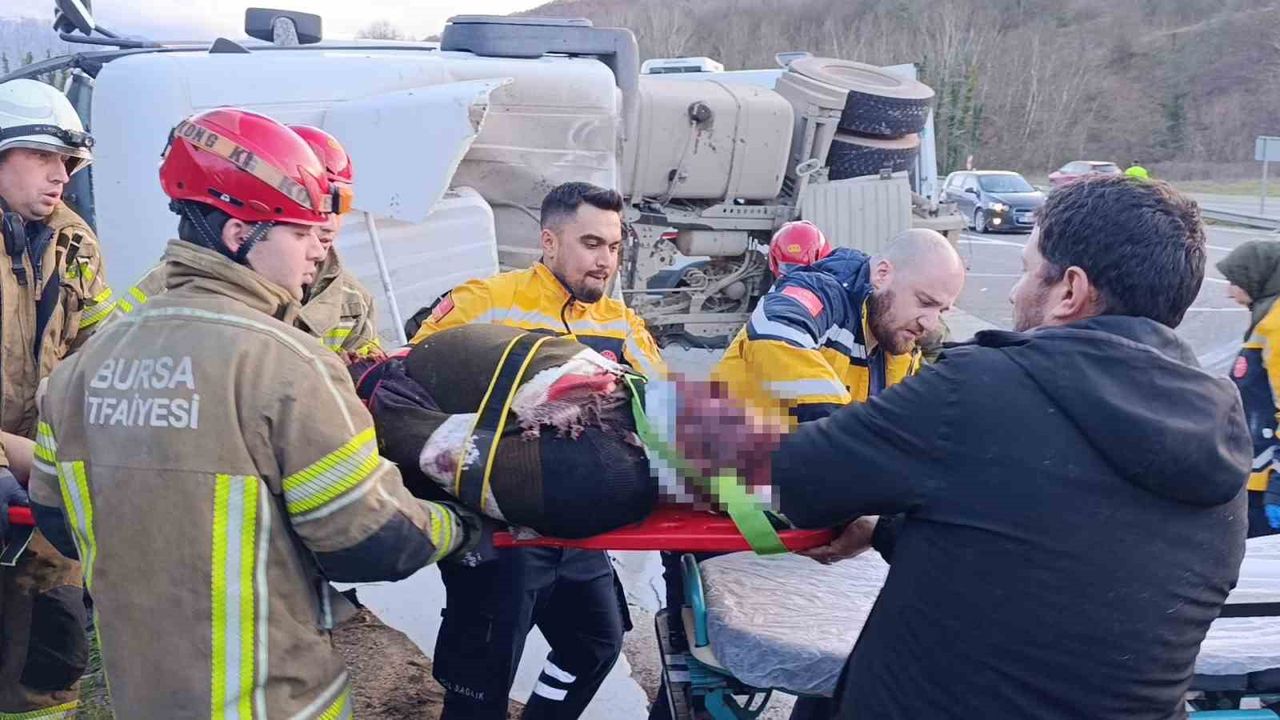Kaza, saat 17.30 sıralarında Bursa-Ankara karayolu üzeri kırsal Yeniköy mahallesi mevkiinde meydana geldi. Bozüyük'ten İnegöl'e seyir halinde olan Mehmet G. (65) yönetimindeki 16 AGK 90 plakalı beton tankeri, virajda sürücüsünün kontrolünden çıkarak devrildi. Tanker kısmı refüje fırlarken, çekici kısmı ise yolun diğer kısmına devrildi. Sürücü araçta sıkışarak ağır yaralandı. Kaza yerine 112, jandarma, trafik ekipleri ve itfaiye arama kurtarma ekipleri sevk edildi. Araçta sıkışan sürücü ekiplerce çıkarıldı. Yaralı, ambulansla İnegöl Devlet Hastanesine kaldırıldı. Yaralının sağlık durumunun ciddiyetini koruduğu öğrenildi.