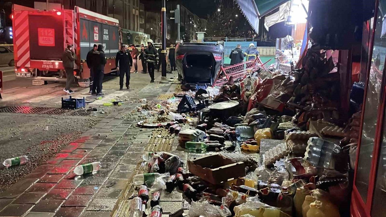 Sivas'ta bir otomobil sürücüsünün kontrolünden çıkarak market ve kuruyemiş dükkanına çarptı. Otomobil sürücüsü kazayı yara almadan atlattı.