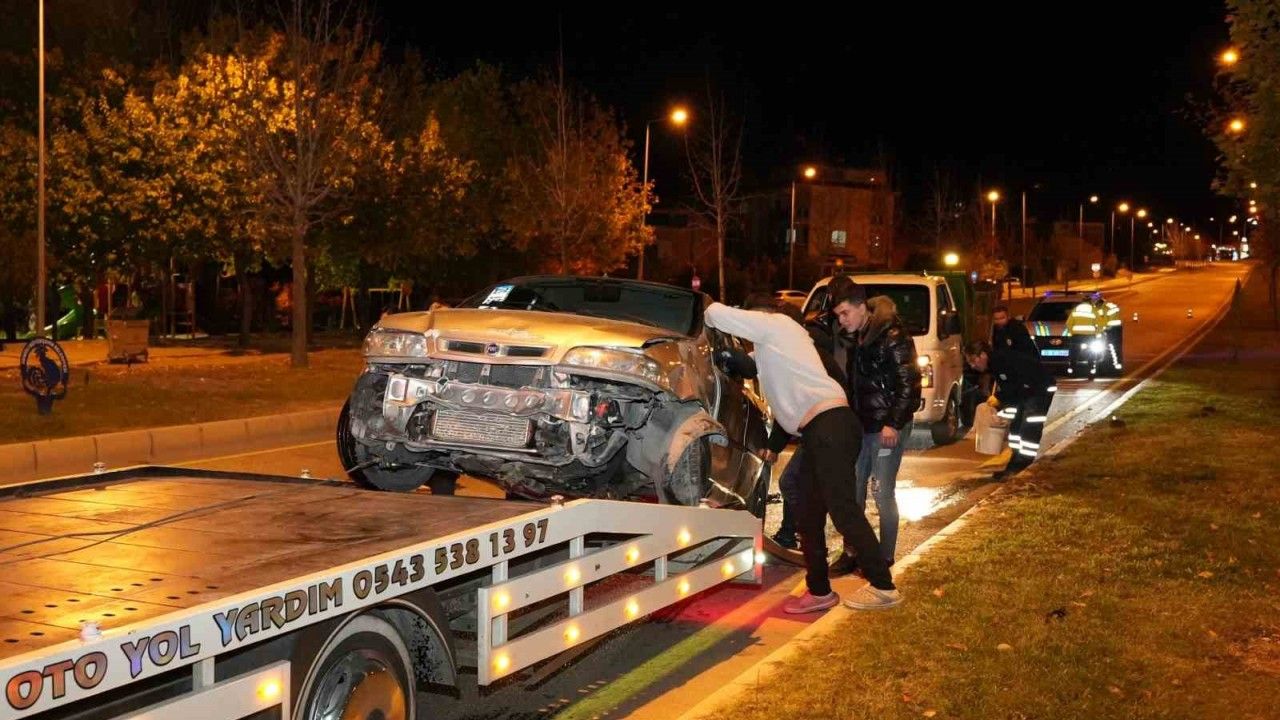 Denizli’de direksiyon hakimiyetini kaybeden otomobil önce kaldırıma ardından orta refüjdeki Yavaş levhasına çarparak durabildi. Kaza sonucunda araçta bulunan 2 şahısta herhangi bir yaralanma olmazken araçta maddi hasar meydana geldi.