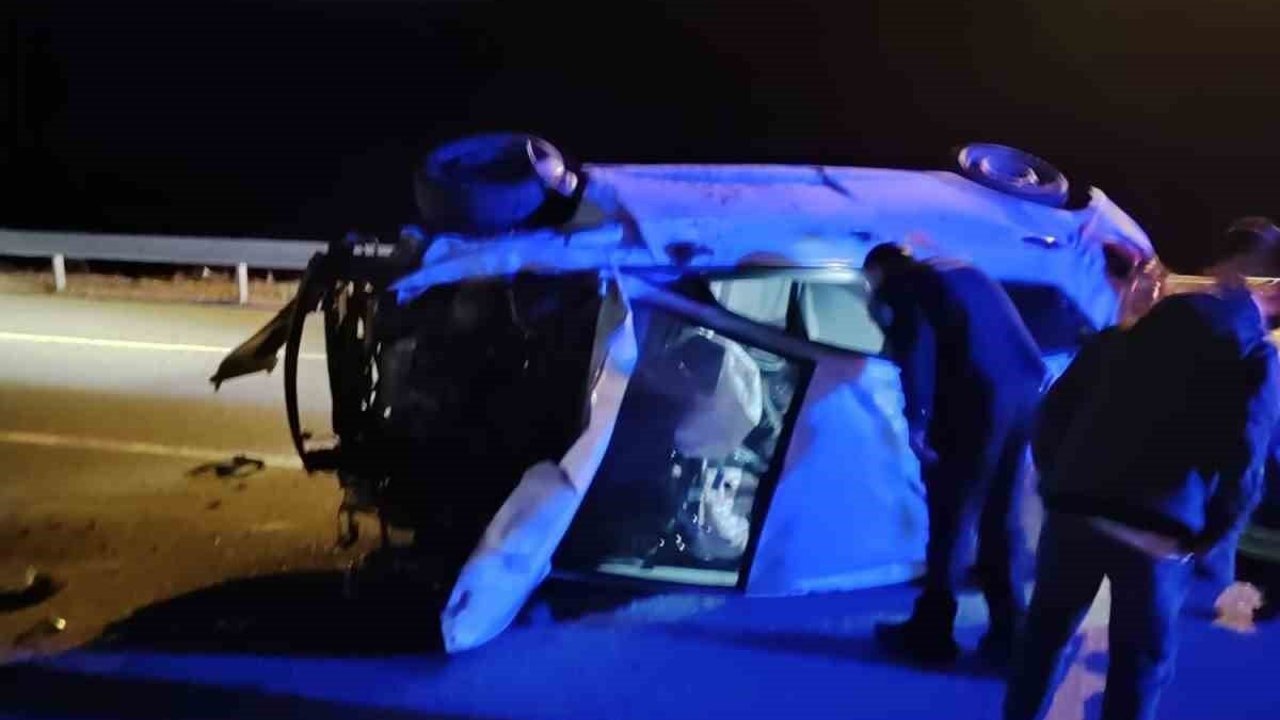 Kayseri'nin Bünyan ilçesinde kontrolden çıkan otomobil yan yattı.