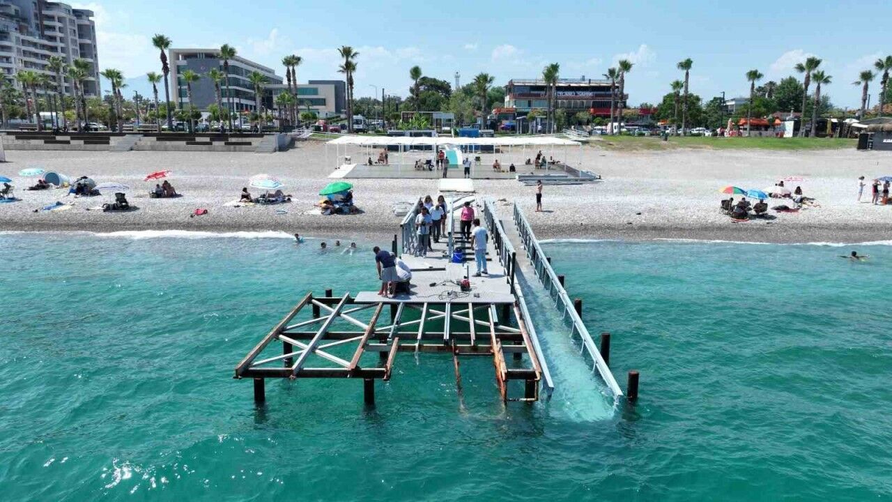 Antalya’da yaşayan ya da şehir dışından tatil için kente gelen engelli vatandaşların rahatlıkla denize girebildiği, geçtiğimiz yıl da 44 bin kişiye hizmet veren Konyaaltı Sahili’ndeki Büyükşehir Belediyesi Engelsiz Plaj yeniden düzenlenip bakım ve onarımı yapılarak engelli vatandaşların kullanabileceği hale getiriliyor. Büyükşehir Belediyesi Fen İşleri Dairesi Başkanlığı ekipleri, iskele ve donatıları yeniliyor. Plajın iskelesi dalga ve fırtınalardan etkilenmemesi için ahşap malzeme yerine daha sağlam ve kaliteli bir malzemeyle yenileniyor. Plaja ait cankurtaran kulesi de iskele üzerine monte ediliyor. Ayrıca bu yıl engelli bireylerin denize ulaşımını sağlayacak yatay asansör sistemi de yenileniyor.