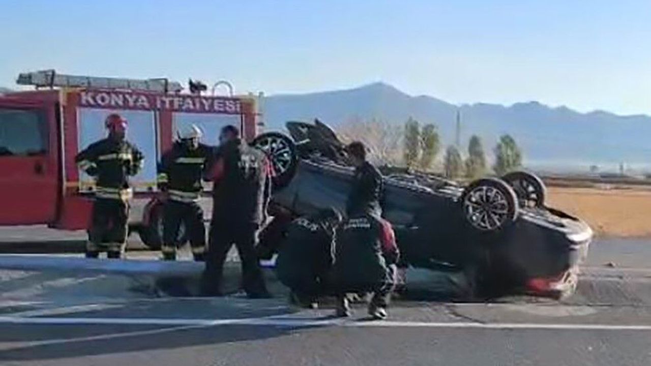 Konya’nın Seydişehir ilçesinde otomobilin takla atması sonucu 1’i çocuk 3 kişi yaralandı.