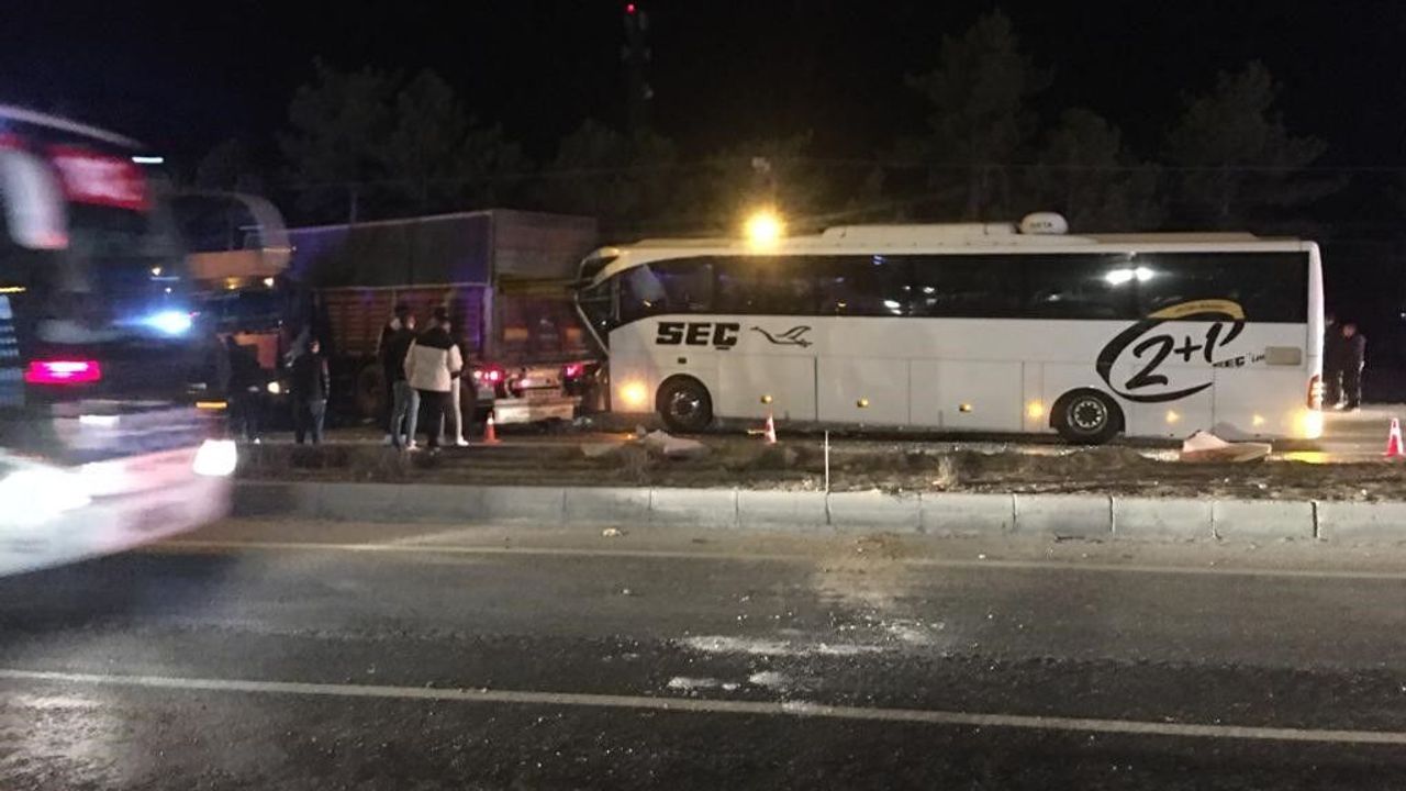 Konya’nın Karapınar ilçesinde yolcu otobüsünün tıra çarpması sonucu meydana gelen trafik kazasında 11 kişi yaralandı.