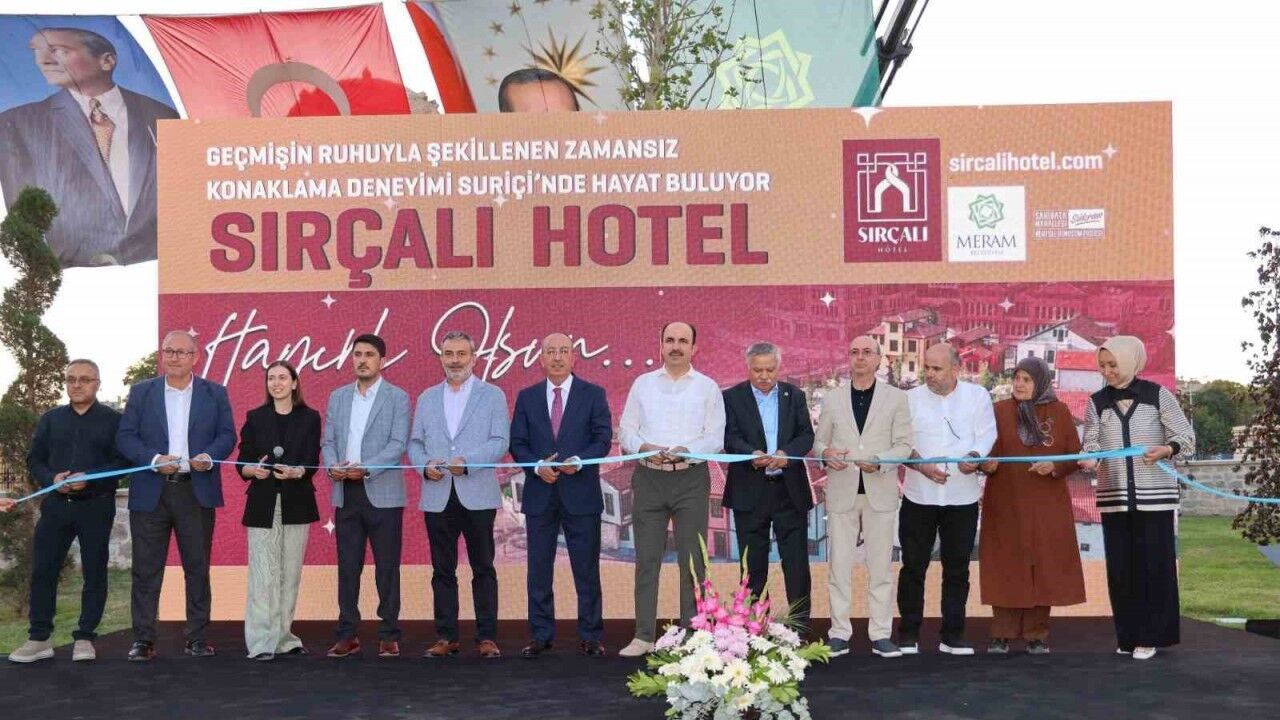Meram Belediyesi’nin dev projesi Sahibata Mahallesi Şükran Kentsel Dönüşüm Projesi kapsamında yeniden inşa edilen tescilli yapılar artık ‘Sırçalı Hotel’ adıyla Konya’ya ve Türkiye turizmine hizmet verecek. Projenin en önemli adımlarından biri olan eşsiz zarif yapı, AK Parti Konya Milletvekili Latif Selvi, Konya Büyükşehir Belediye Başkanı Uğur İbrahim Altay, Selçuklu Belediye Başkanı Ahmet Pekyatırmacı, Karatay Belediye Başkanı Hasan Kılca, Meram Belediye Başkanı Mustafa Kavuş, AK Parti Konya İl Başkan Vekili Nihan Öncan, AK Parti Meram İlçe Başkanı Mehmet Munlafalıoğlu, AK Parti Karatay İlçe Başkanı Akif Demirci, MHP Meram İlçe Başkanı Mahmut Yaman, Meclis Üyeleri, Muhtarlar, kurum müdürleri ve vatandaşların da katıldığı törenle hizmete açıldı.