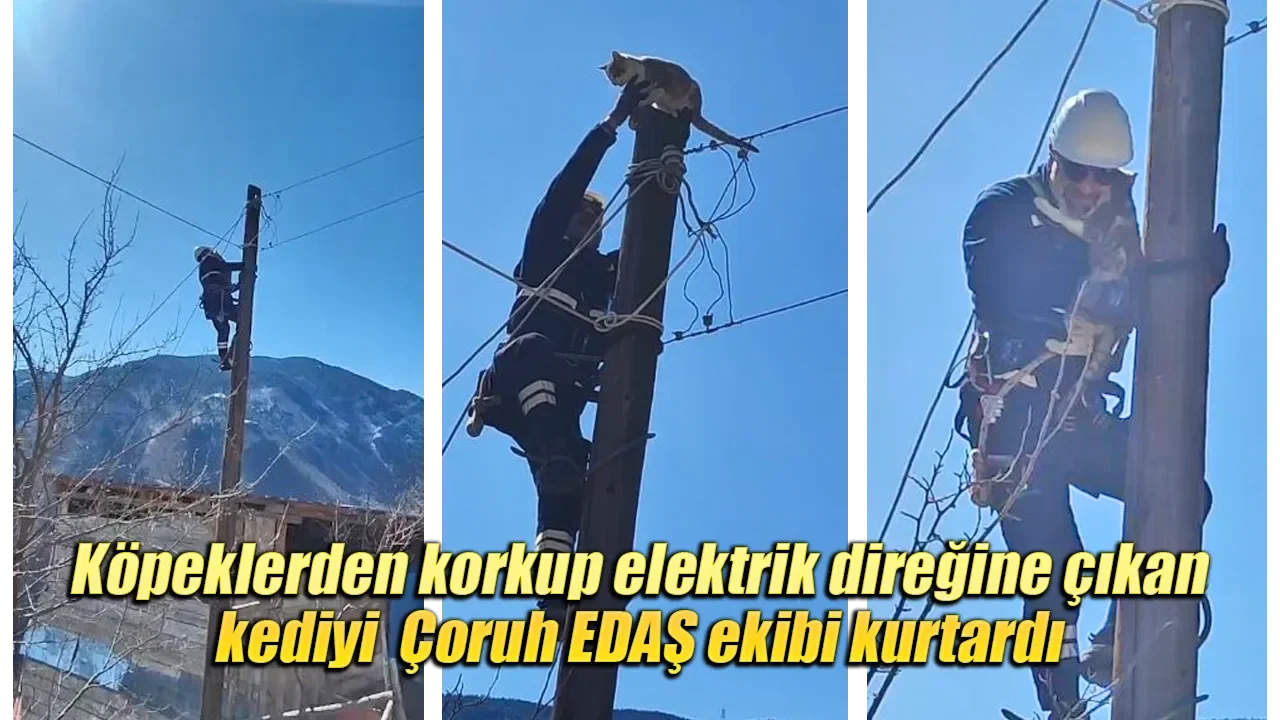 Çoruh EDAŞ çalışanı Yunus Meydan, sadece arıza giderme çalışmaları yapmadıklarını belirterek 'Biz sadece arızalara müdahale etmiyoruz. Hayvan ya da insan canı fark etmeksizin, ihtiyaç duyulan her durumda kurtarma çalışmalarına da koşuyoruz. Bu kedimiz de köpekten korkup direğe çıkmış ve mahsur kalmış. Biz de gerekli müdahaleyi yaparak kurtardık' dedi.