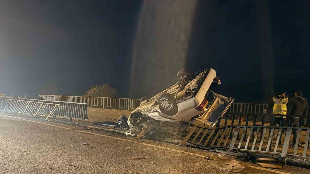 Öte yandan hurdaya dönen araç bölgeye gelen iş makinesi tarafından devrildiği köprü demirlerinin üstünden kaldırıldı.