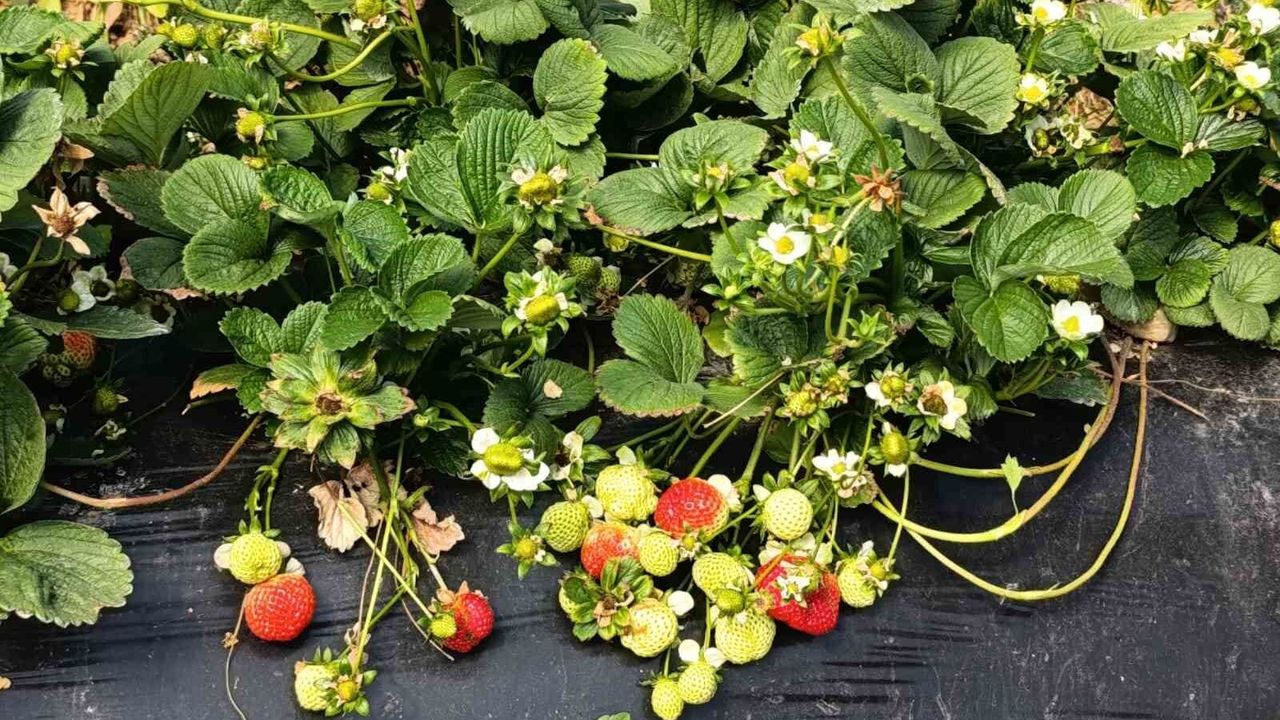 Manisa'nın tescilli Köprübaşı çileği, dört mevsim süren hasadıyla hem üreticinin yüzünü güldürüyor hem de ilçe ekonomisine önemli katkı sağlıyor.