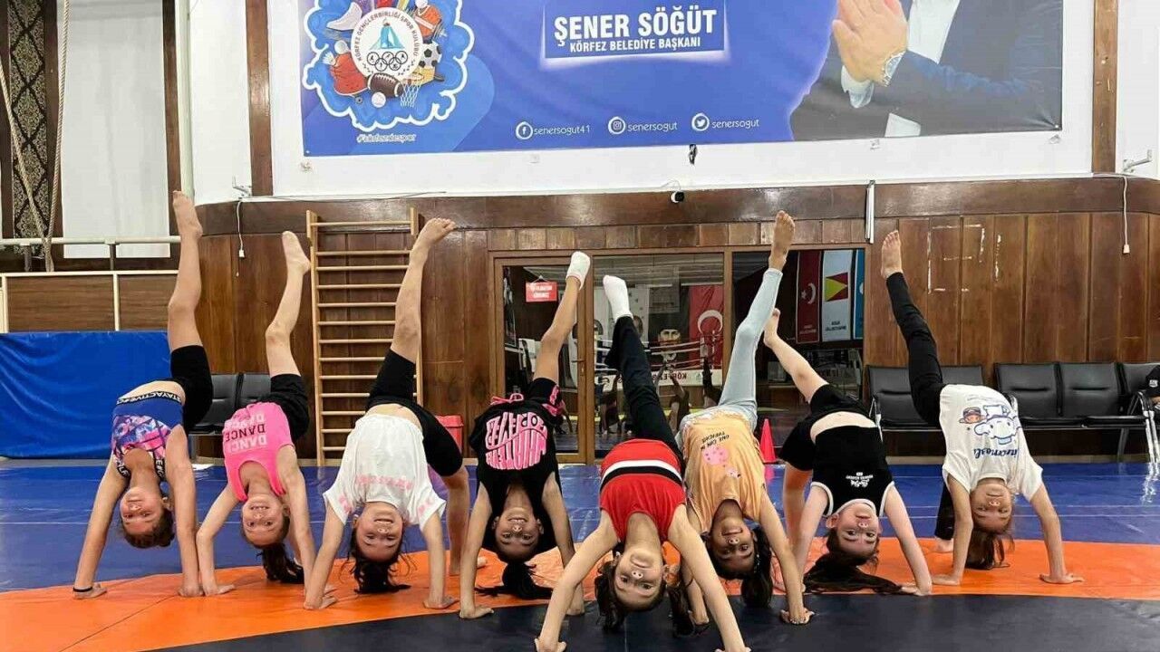 Körfez Belediyesi Gençlerbirliği Spor Kulübü bünyesinde açılan cimnastik kursunda eğitim alan minik sporcular, geleceğin şampiyonları olma yolunda ilerliyor.