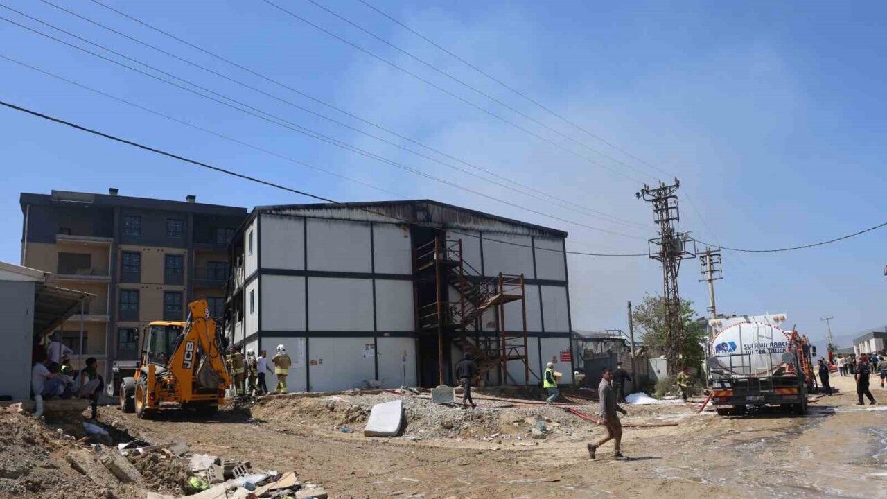 Hatay’da şantiye alanında işçilerin kaldığı konteyner yatakhane alevlere teslim oldu. Yanarak kullanılmaz hale gelen yatakhanede çıkan yangın yaralanma ve can kaybı yaşanmadan söndürüldü.