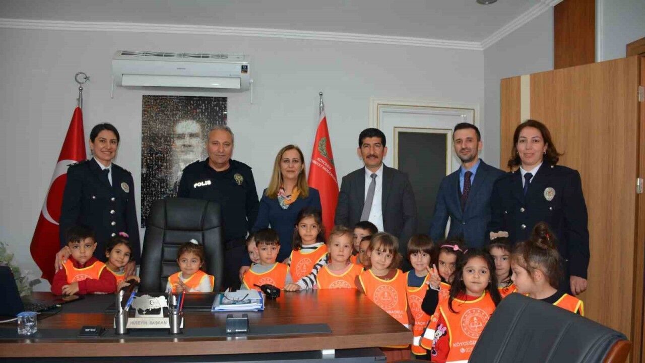 Muğla’nın Köyceğiz ilçesinde Polis Haftası kapsamında İlçe Milli Eğitim Müdürü Kerem Karahan, Köyceğiz Anaokulu idareci, öğretmen ve öğrencileri ile birlikte Köyceğiz İlçe Emniyet Müdürü Hüseyin Başkan’ı ve emniyet personelini makamında ziyaret etti.