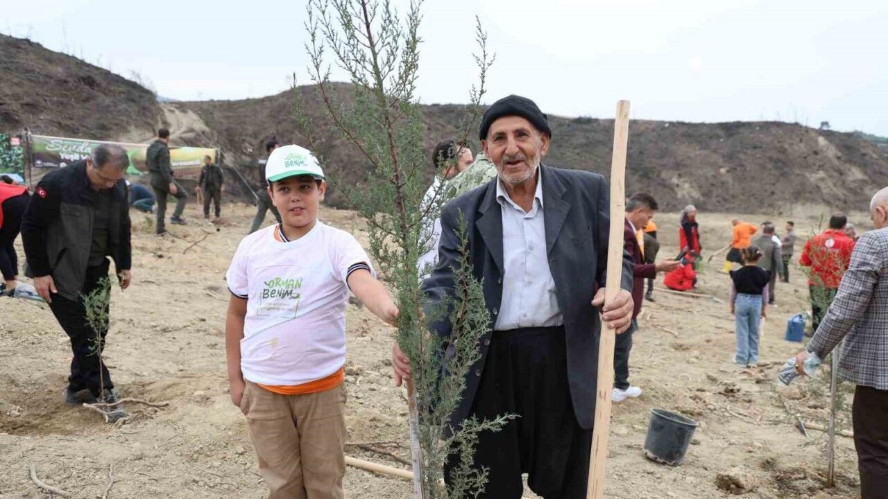 Adana’nın Kozan ilçesinde yanarak zarar gören 79 hektarlık alanda 11 Kasım Milli Ağaçlandırma Günü’nde ağaçlandırma çalışması yapıldı. Etkinlikte, yangını yaşayan dede ve torunu da birlikte fidan dikti.