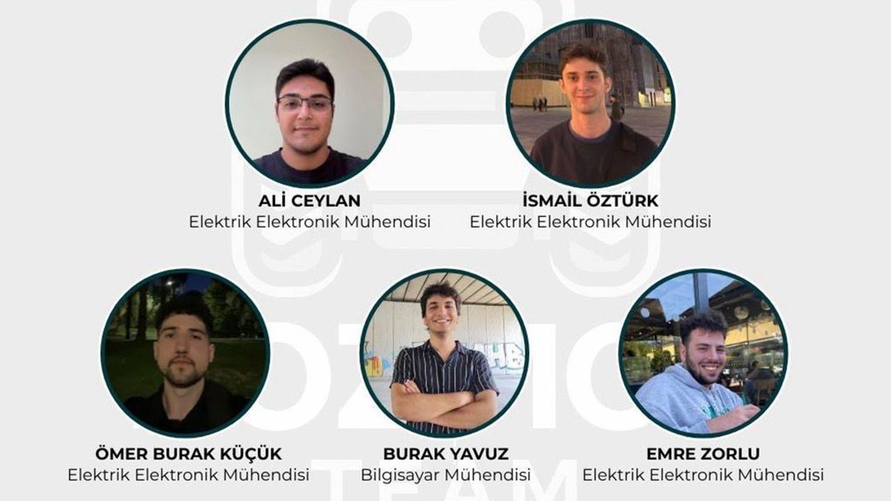 Mühendislik-Mimarlık Fakültesi Elektrik-Elektronik Mühendisliği Bölümü öğrencileri Ali Ceylan, İsmail Öztürk, Emre Zorlu ve Ömer Burak Küçük ile Bilgisayar Mühendisliği Bölümü öğrencisi Burak Yavuz’dan oluşan ekip, geliştirdikleri yenilikçi projeyle jüri değerlendirmesinden yüksek puan aldı.