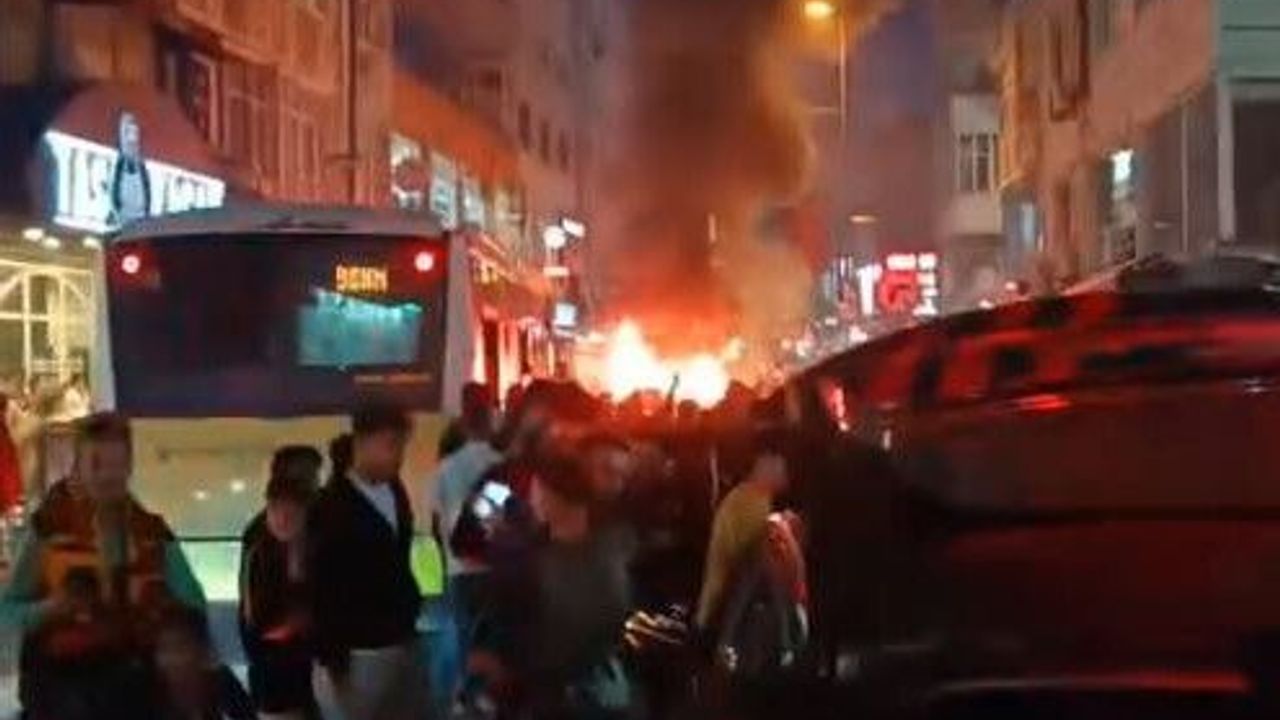 Küçükçekmece’de Galatasaraylı taraftarların havai fişekle yaptığı şampiyonluk kutlaması sırasında yangın çıktı. Alevler içinde kalan araç, itfaiye ekiplerince söndürüldü.
