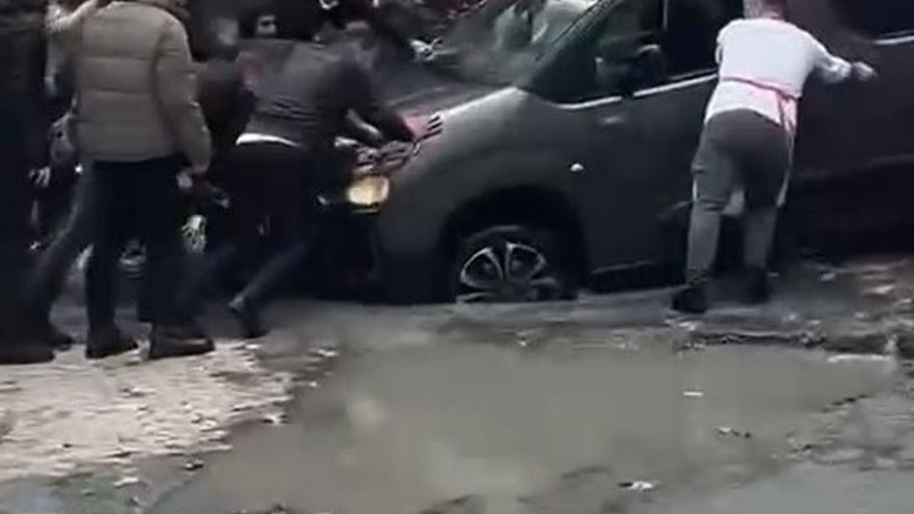 Küçükçekmece ilçesinde İSKİ’nin çalışma yapıp kapattığı yolda sağanak yağışın etkisiyle çökme oluştu. Sokaktaki iki araç çukura düşerken araçlar iş makinesi tarafından çıkarıldı.
