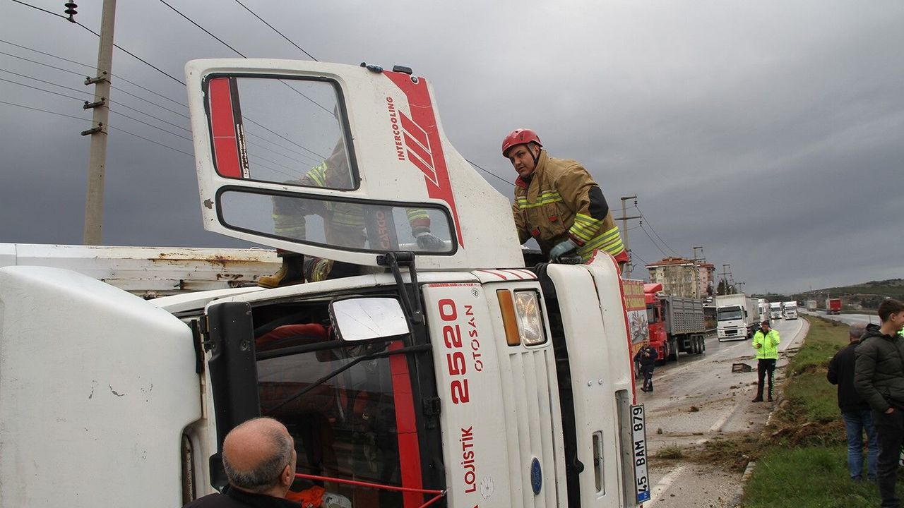 Manisa'nın Kula ilçesinde yağış nedeniyle kayganlaşan yolda kontrolden çıkan kamyonet devrildi. Kazada sürücü hafif yaralandı.