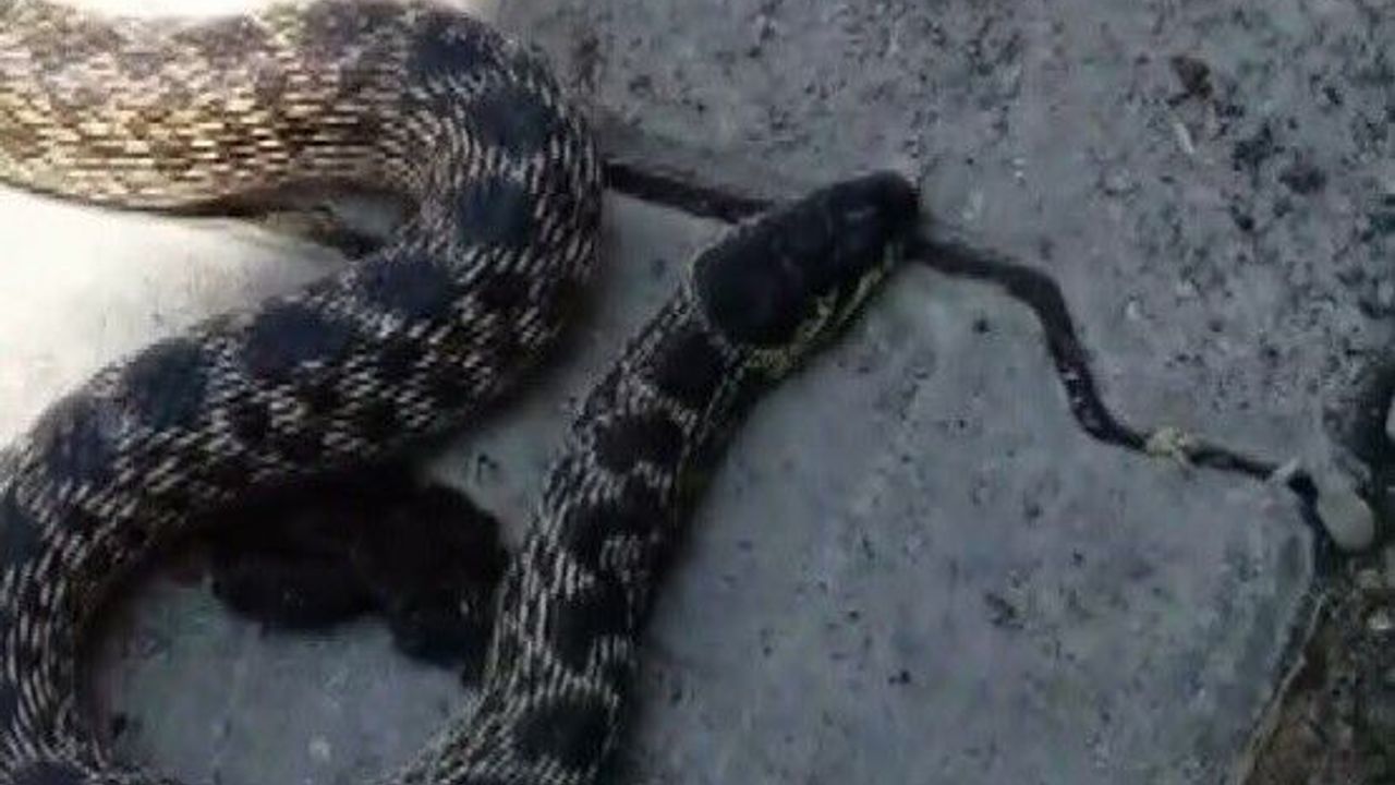 Erzincan’ın Tercan ilçesine bağlı Küllüce köyünde kümesteki yumurtaları yiyen yılanı yakalayan vatandaş doğaya saldı.