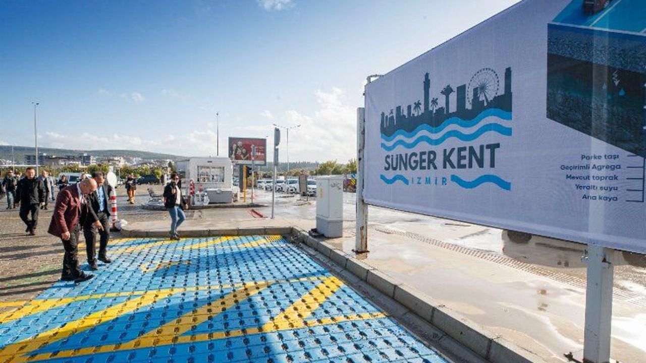 İzmir Büyükşehir Belediyesi iklim krizi ve kuraklığa karşı başlattığı Sünger Kent İzmir projesine yeni halkalar ekliyor. Türkiye’de ilk kez Sünger Otopark adı verilen projeyi inceleyen Başkan Soyer, uygulamayla yağmur suyunu biriktirip, tekrar kullanmayı hedeflediklerini belirterek “Sadece bu alanda yılda 6 bin metreküp su tasarrufu sağlanacak, bu da üç olimpik havuza eşit” dedi.İZMİR (İGFA) - Küresel iklim krizi ve kuraklıkla mücadele için Sünger Kent İzmir projesini hayata geçiren İzmir Büyükşehir Belediyesi, çalışmaya yeni bir halka daha ekledi. Gaziemir’de İZELMAN’a ait Sakarya Otoparkı, sünger otoparka dönüştürüldü. Otoparkı inceleyen ve bilgi alan İzmir Büyükşehir Belediye Başkanı Tunç Soyer, “Türkiye'nin ilk sünger otoparkına hoş geldiniz” dedi. Burasının da ilk bakışta Türkiye'nin her yerinde görülen otoparklardan biri gibi algılandığını ifade eden Başkan Tunç Soyer, “Ama öyle değil. Bu otopark Türkiye'deki bütün otoparklardan farklı. Zeminin altına döşenen geçirimli malzeme ile suyu zemin altında toplayıp, biriktirme imkanı veriyor. Yağmur suyu kanallarına gidip zayi olan suyu bu otoparkta zayi etmiyoruz. Kaybolmasına izin vermiyoruz. Yağmur suyu olarak Körfez’e akmasına izin vermiyoruz. Burada biriktiriyoruz. Bu da önemli bir tasarruf sağlıyor” dedi.
