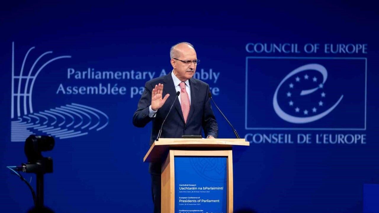 TBMM Başkanı Numan Kurtulmuş, İrlanda’nın başkenti Dublin’de düzenlenen Avrupa Parlamento Başkanları Konferansı’nın "İstikrarsız Dönemlerde Temsili Demokrasilerin Sınamaları" başlıklı ikinci oturumunda konuştu. Kurtulmuş, temsili demokrasilerin kurumsal varlığının parlamentolar, demokratik meşruiyetin ise seçimler ve siyasal katılımın önündeki engellerin kaldırılmasına bağlı olduğunu belirtti. Demokratik kurumların sağlıklı biçimde teşekkülünü ve işlemesini tehdit eden çeşitli faktörlerle de zaman zaman karşılaştıklarını dile getiren Kurtulmuş, bunların bir kısmının savaşlar ve darbeler gibi cebri müdahaleler, bir kısmının ise salgınlar ve doğal afetler gibi insani krizlerle ortaya çıkan durumlar olduğunu kaydetti.