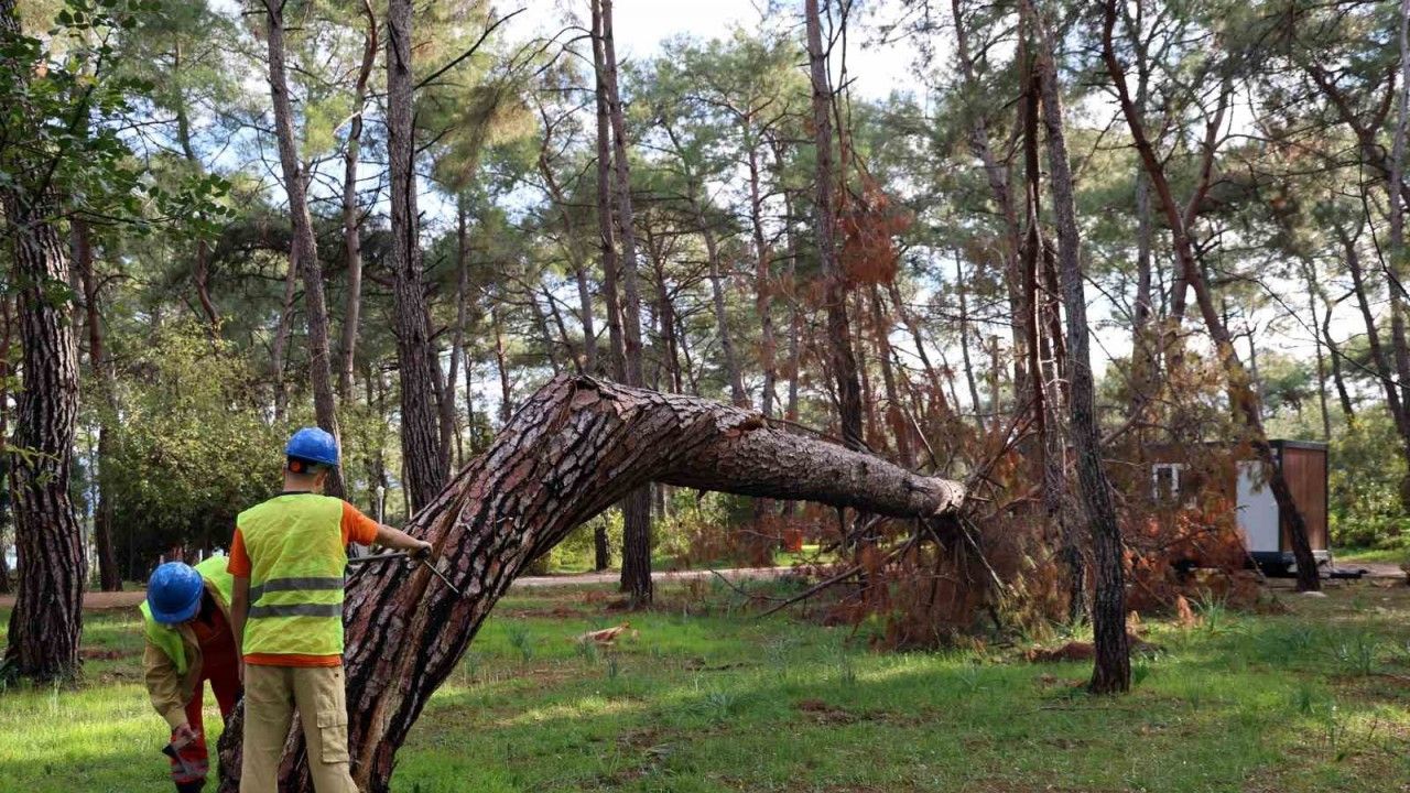 Muğla Orman Bölge Müdürlüğü tarafından yürütülen çalışma kapsamında, risk taşıyan ağaçlar hem havadan dron kamerası ile hem de yer ekipleri tarafından belirlenerek işaretleniyor. 2024 yılındaki gibi benzer kazaların yaşanmaması amacıyla kamp alanı içinde detaylı bir tarama yapılıyor.