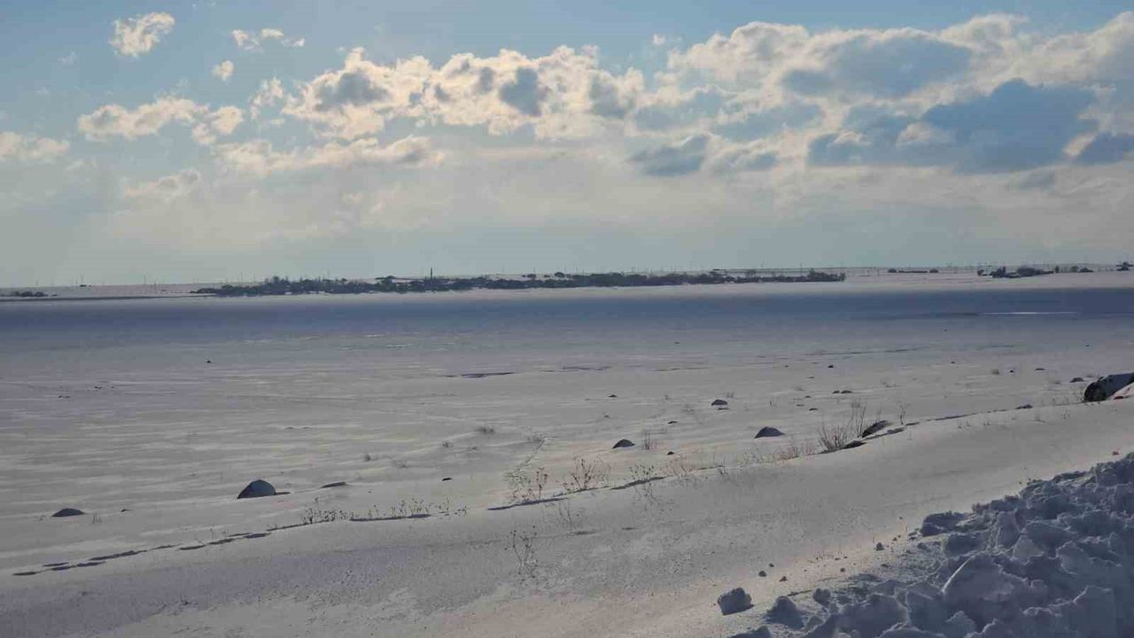 Bitlis'in Adilcevaz ilçesinde bulunan ve 'Kuş cenneti' olarak bilinen Arin Gölü, etkili olan dondurucu soğuklar nedeniyle tamamen buzla kaplandı.