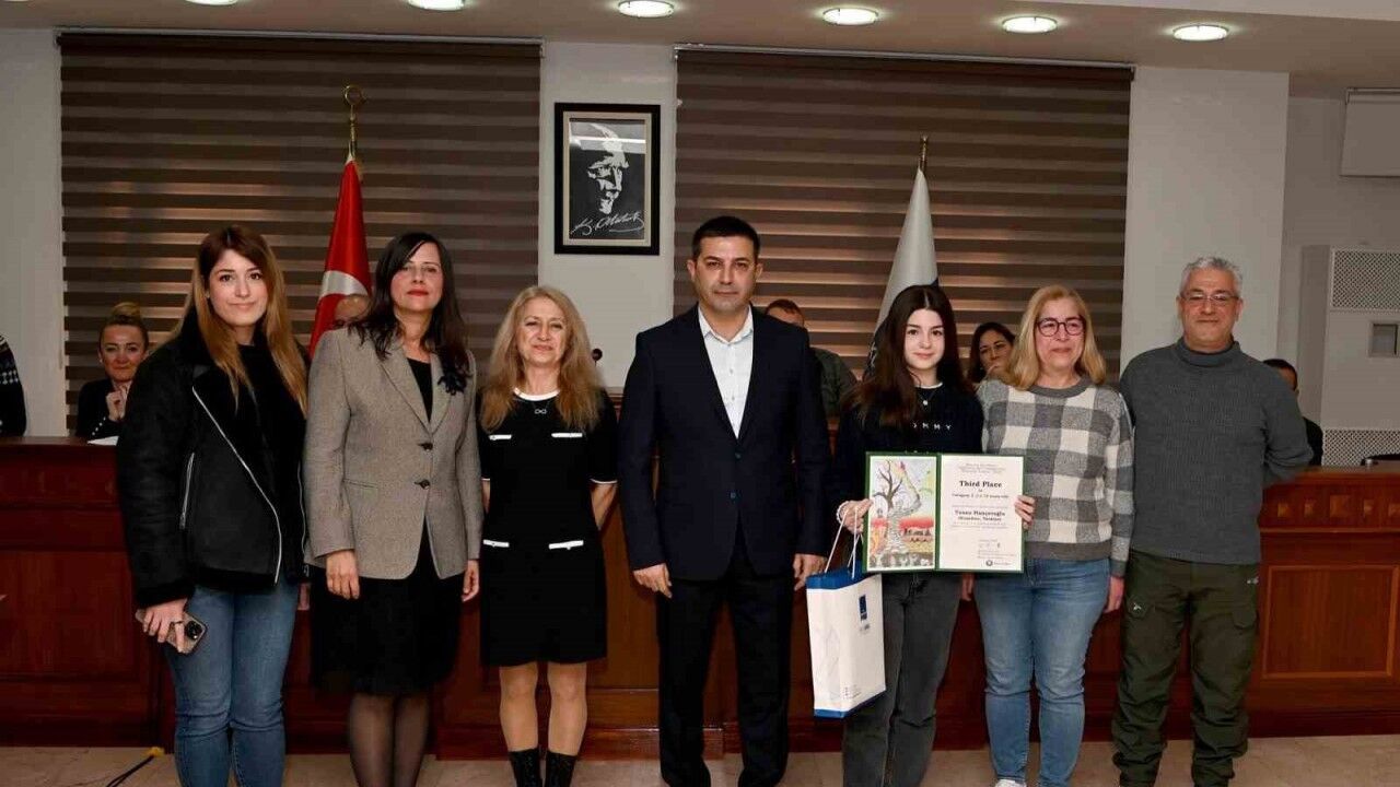 Kuşadası Belediye Meclisi Şubat ayı toplantısı, Kuşadası Belediyesi’nin de üyesi olduğu, Barış için Belediye Başkanları Platformu (Mayors for Peace) tarafından her yıl üye şehirlerde yaşayan çocuklar için düzenlenen barış temalı sanat yarışmasında 3’üncü olan Makbule Hasan Uçar Anadolu Lisesi 10. Sınıf öğrencisi Tuana Hançeroğlu’nu ağırladı. 21 ülke ve 123 şehirden 11-15 yaş grubu 1896 öğrencinin katıldığı "Barışçıl Kasabalar" konulu yarışmada yaptığı resim ile 3’üncü olan Tuana Hançeroğlu’nu tebrik eden Başkan Ömer Günel, "Dünya çapından 1900’e yakın öğrencinin katıldığı bir yarışmada Kuşadalı Sevgili Tuana’nın elde ettiği başarıdan dolayı çok mutluyuz. Başarılarının devamını diliyoruz" dedi.